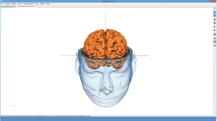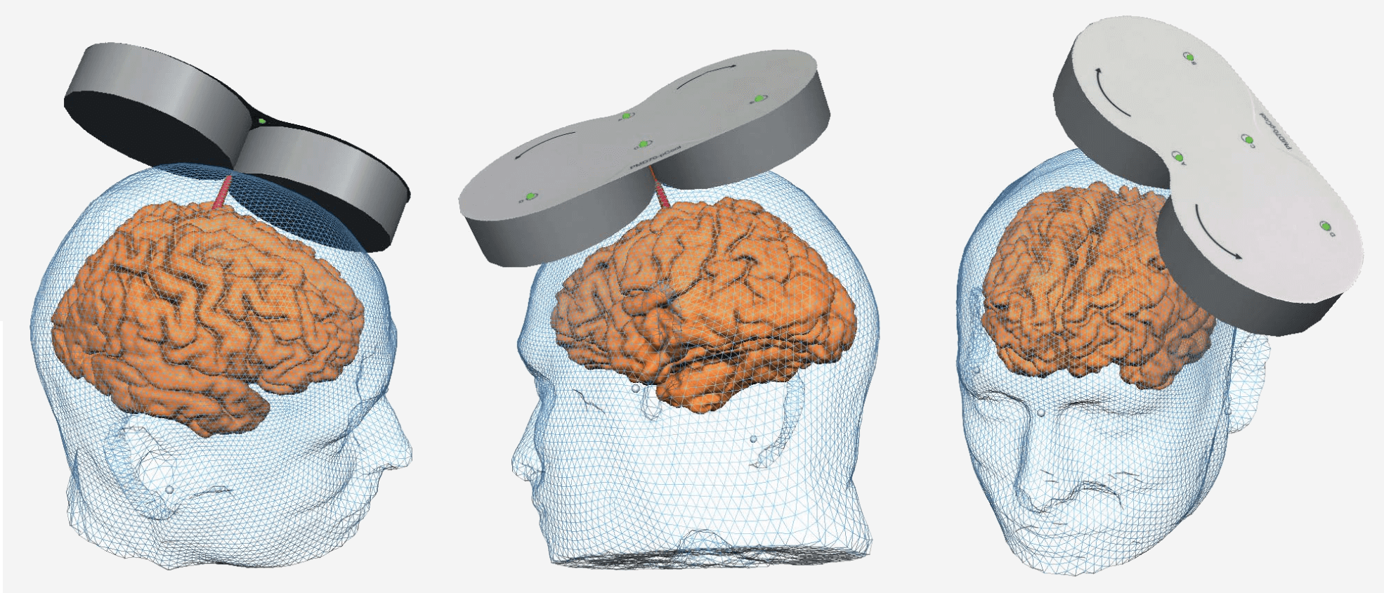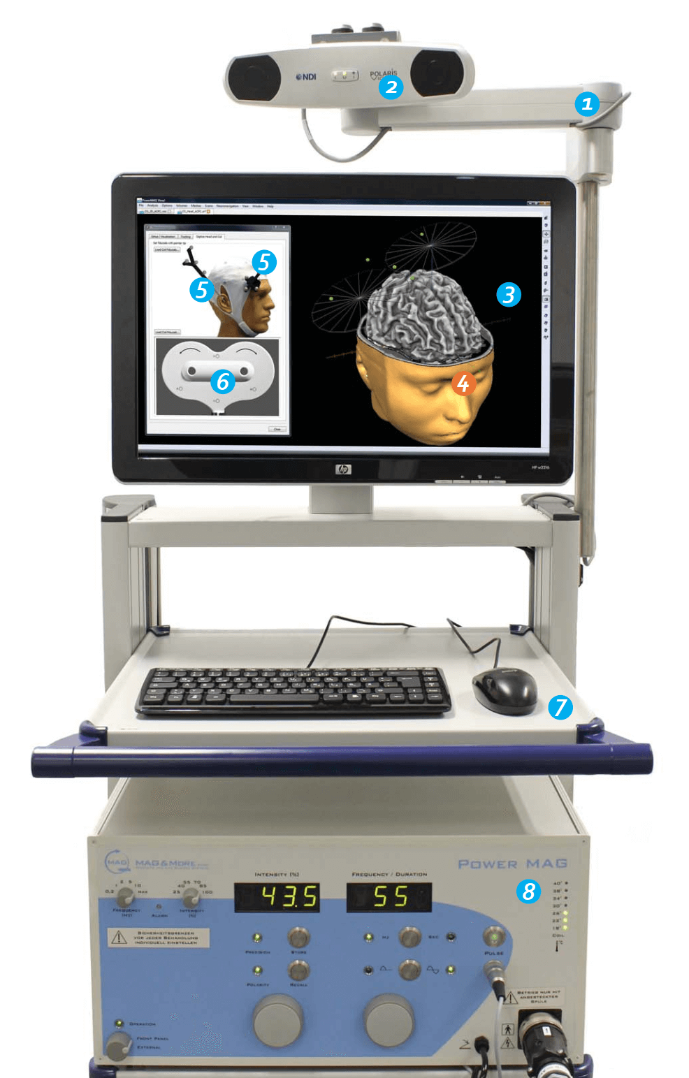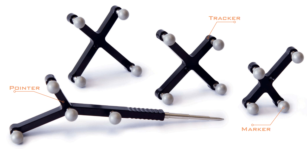 Trackers are elementary components for the co-registration of the coil and the head. Two Trackers with different characteristics are attached to both the coil and the head (While using multiple TMS coils trackers with different geometries are attached). Thus the coils and the head are recorded and differentiated from one another in the coordinate system of the navigation system.