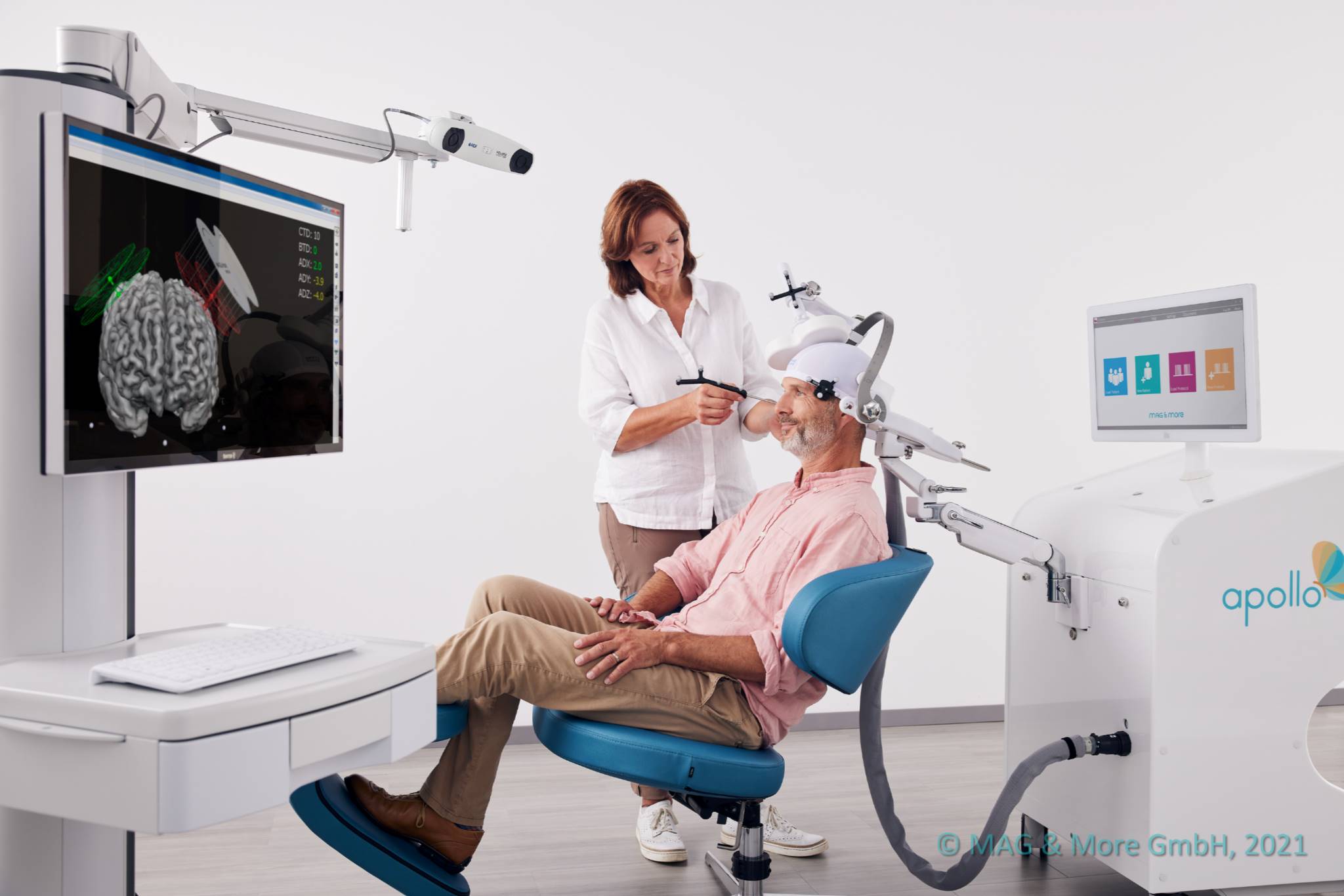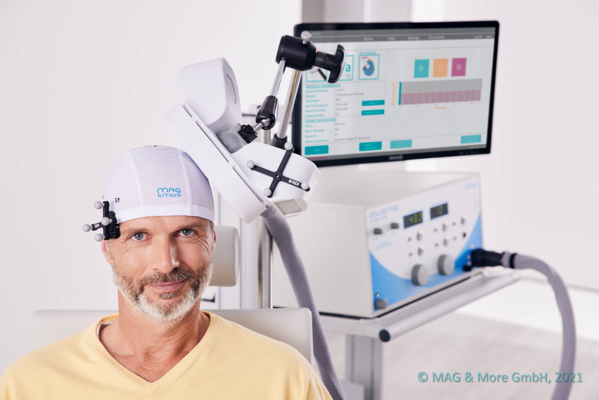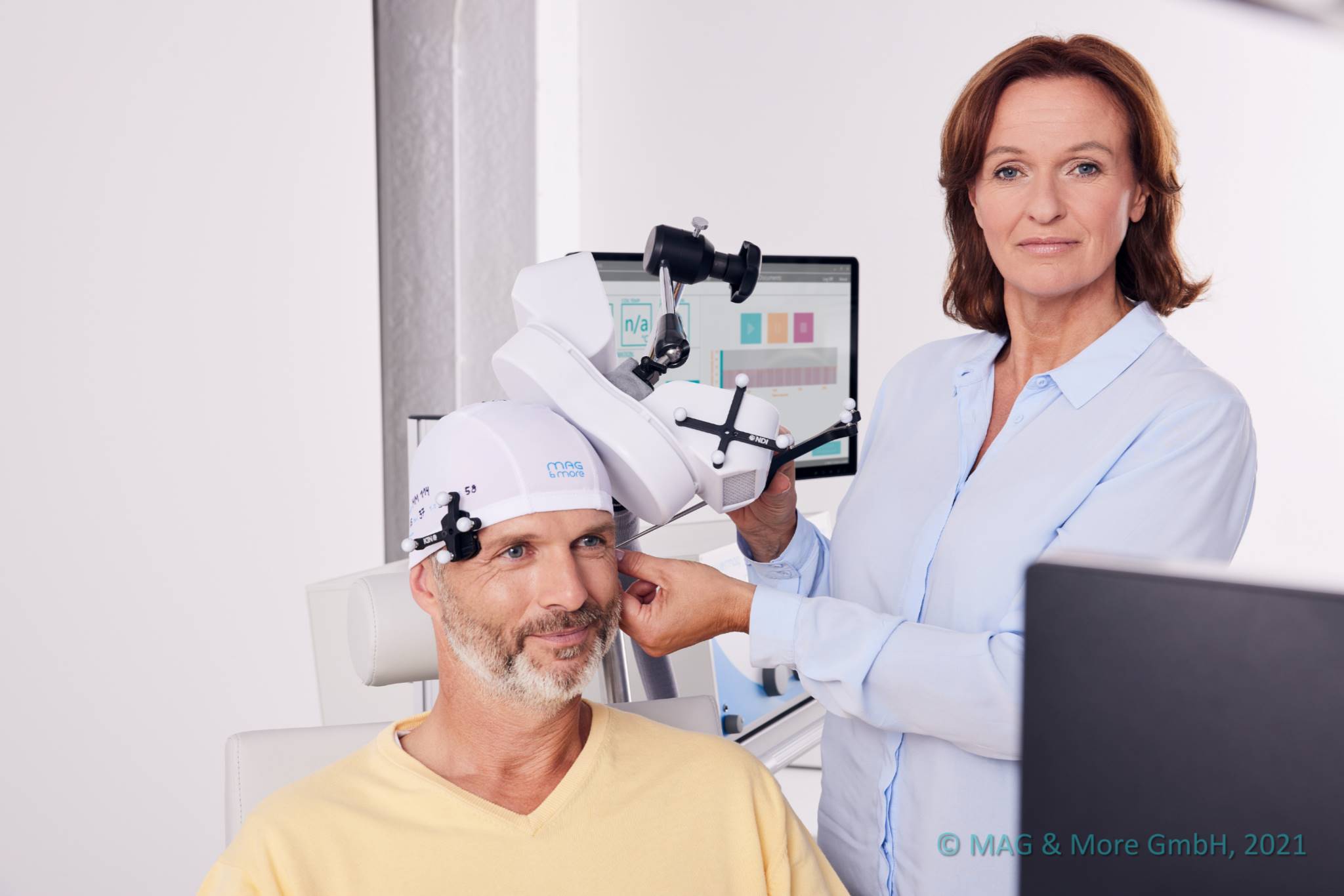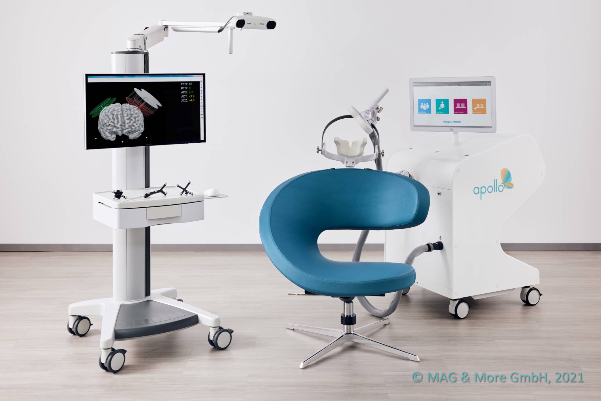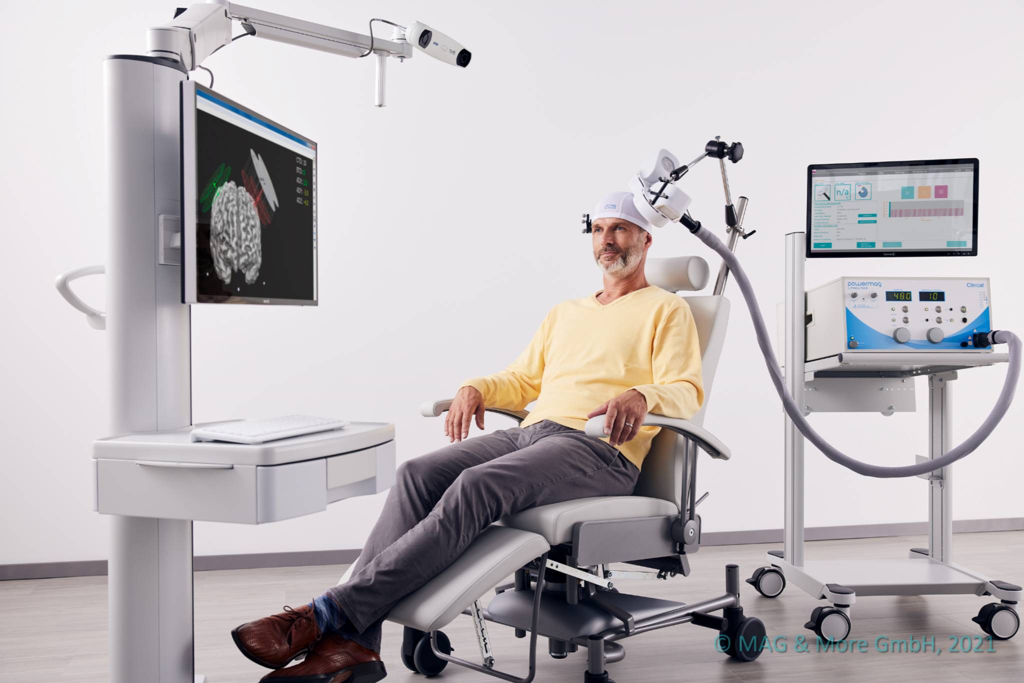 The markers mounted on the trackers reflect the infrared signal transmitted by the camera. This signal is again received by the camera and from this the system calculates the exact positions in space. This technology has the advantage that the tracker is fully free to move as a result of the wireless design. Furthermore, trackers and markers have no electronic parts that could be impaired by the TMS itself.